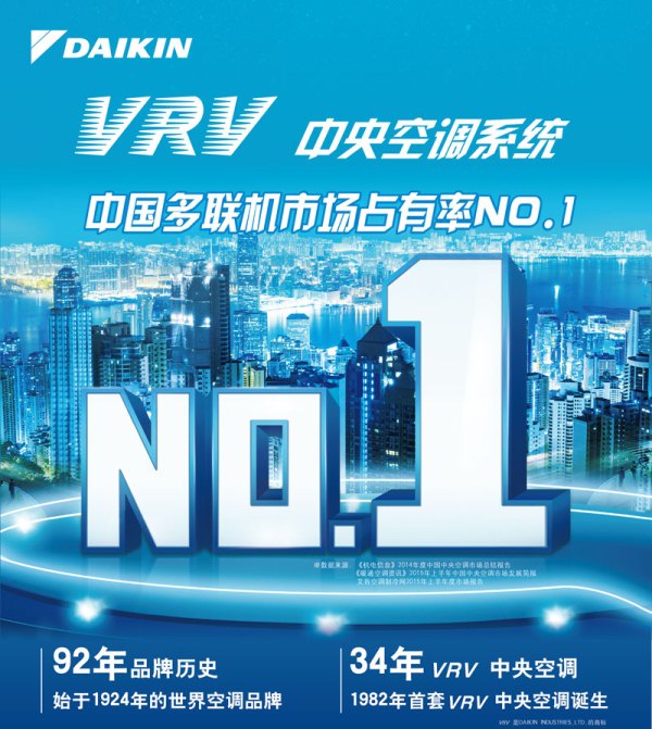 如今在中國(guó)市場(chǎng),大金也受到了用戶與業(yè)界的一致認(rèn)可,已連續(xù)多年榮膺年度十大中央空調(diào)品牌。2015年度,大金VRV 中央空調(diào)系統(tǒng)更以31.2%的市場(chǎng)占有率強(qiáng)勢(shì)蟬聯(lián)中國(guó)多聯(lián)機(jī)市場(chǎng)NO.1。*2