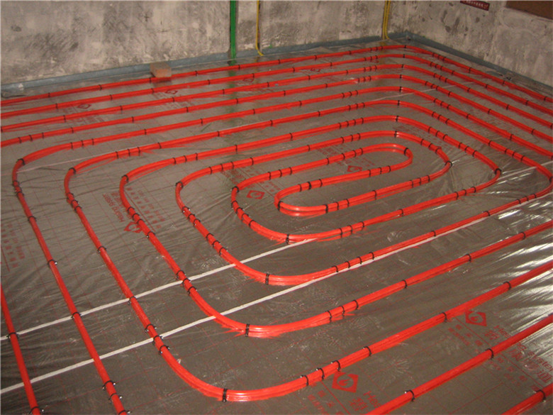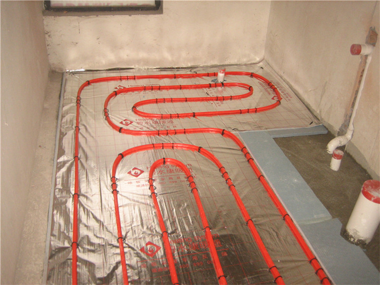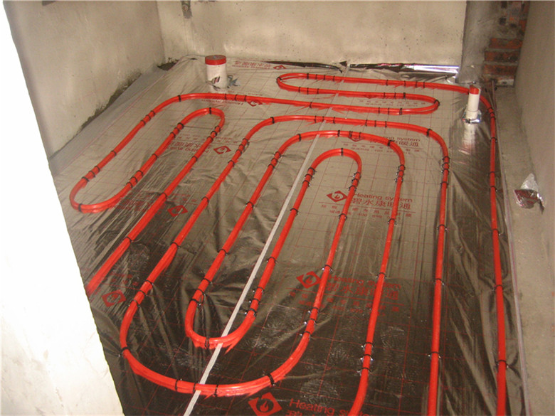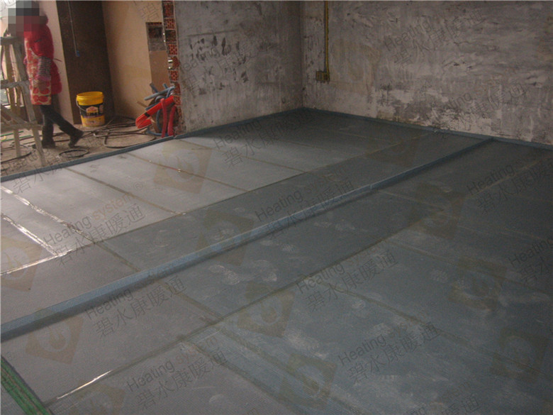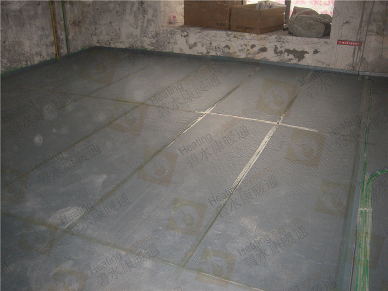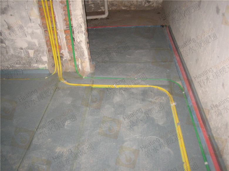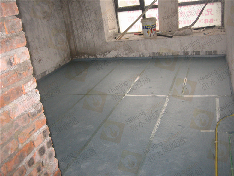 3.鋪設(shè)反射膜后,再鋪設(shè)PE-RTⅡ代地暖專用管,用專用卡釘固定盤繞(雙管螺旋鋪設(shè),平整,彎曲無變形);