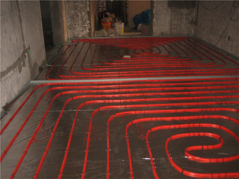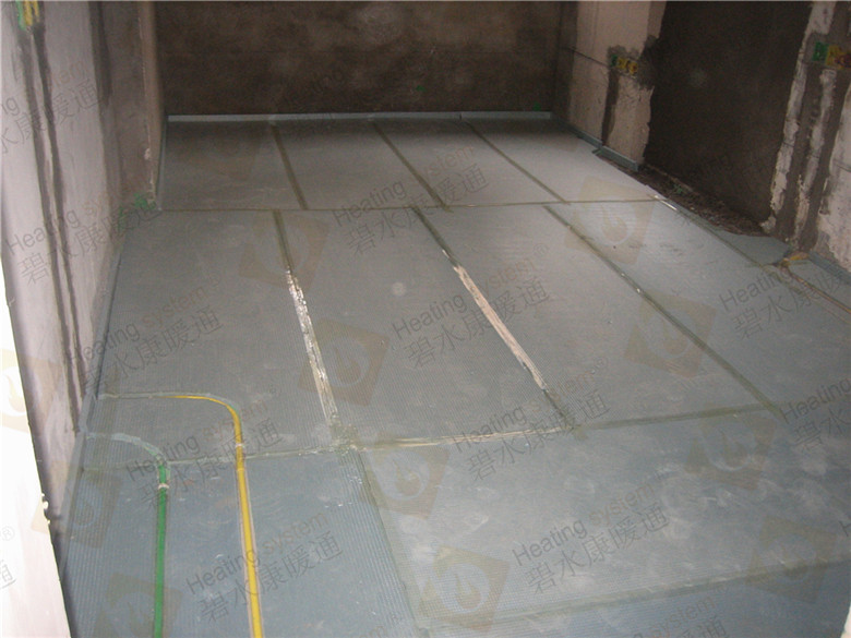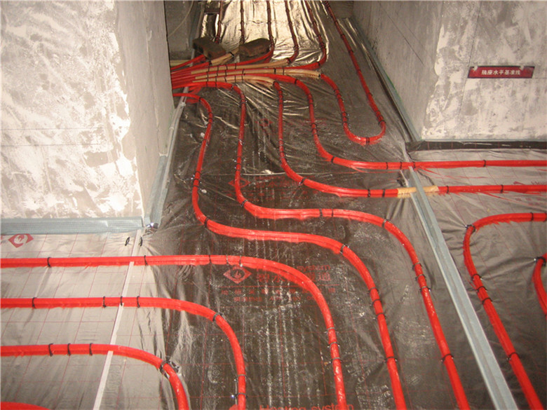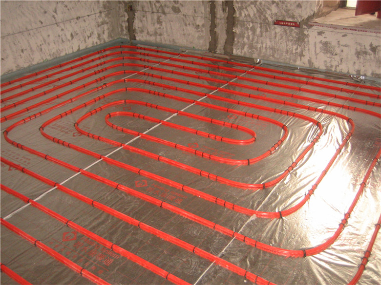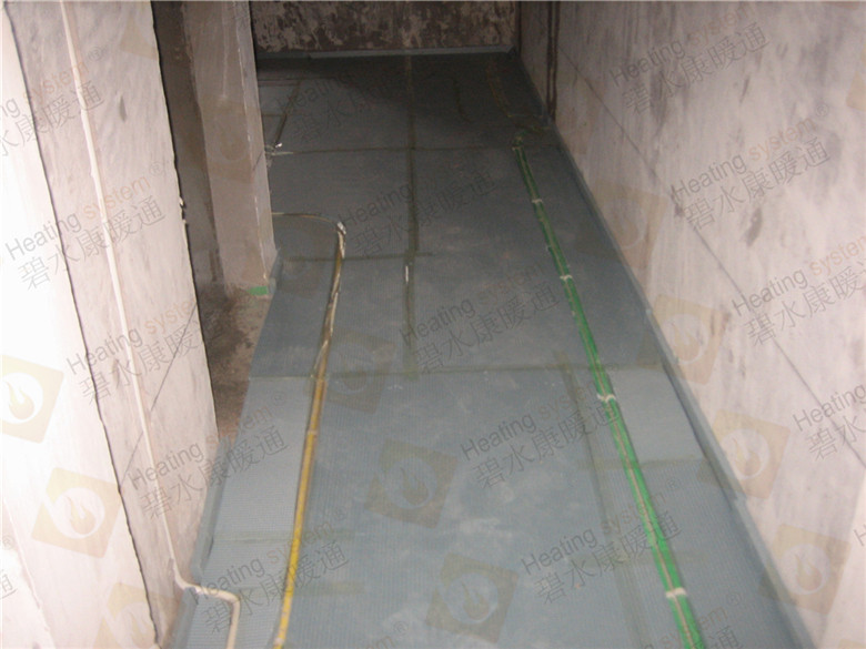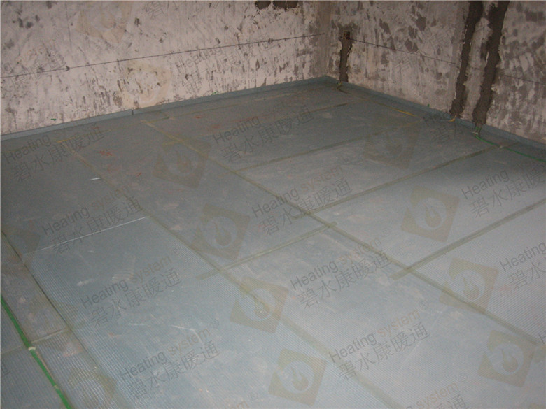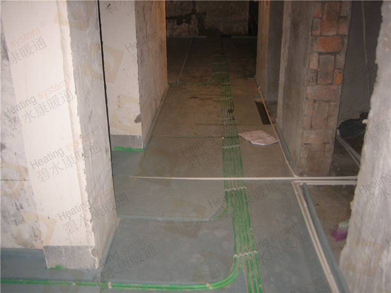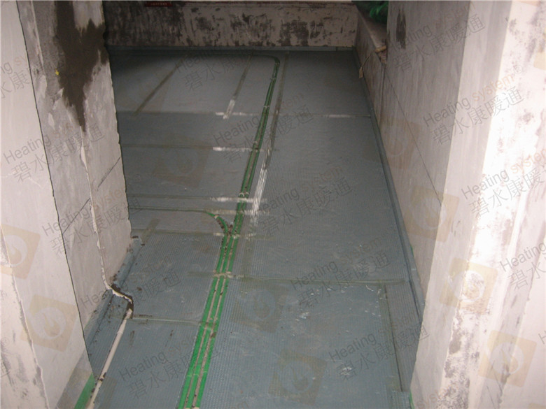3.鋪設(shè)反射膜后,再鋪設(shè)PE-RTⅡ代地暖專用管,用專用卡釘固定盤繞(雙管螺旋鋪設(shè),平整,彎曲無變形);